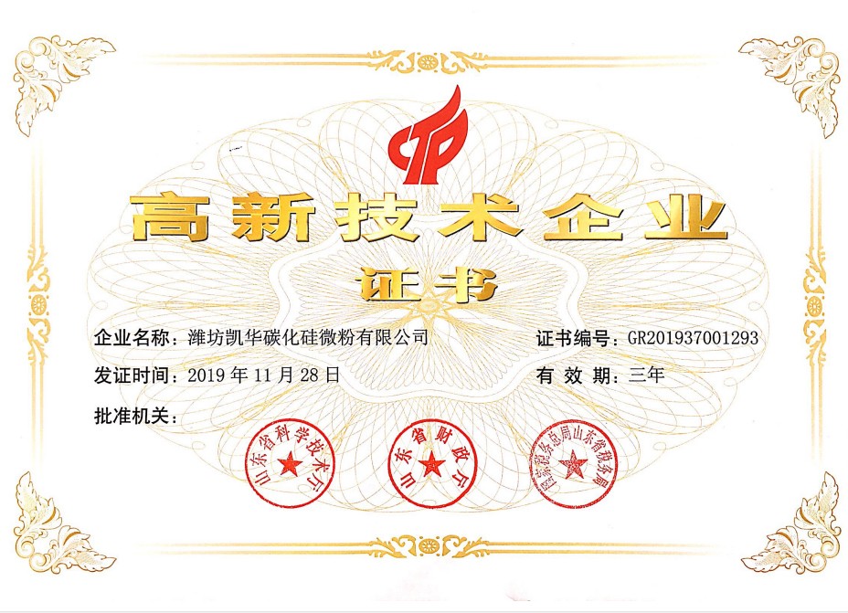 濰坊凱華碳化硅微粉有限公司成立于2002年,國家高新技術(shù)企業(yè),公司占地40畝,標(biāo)準(zhǔn)廠房19000平方,辦公樓、研發(fā)處2000平方,年生產(chǎn)能力3萬噸。一直從事陶瓷級(jí)微粉的生產(chǎn)銷售,所生產(chǎn)的超細(xì)碳化硅微粉具有純度高、粒形好、穩(wěn)定性強(qiáng)等特點(diǎn),主要用于反應(yīng)燒結(jié)、無壓燒結(jié)、硅碳棒新工藝、重結(jié)晶燒結(jié)、蜂窩陶瓷、機(jī)車制動(dòng)裝置、研磨拋光、金屬防腐表面噴涂、納米隔熱保溫材料等領(lǐng)域。標(biāo)準(zhǔn)產(chǎn)品有:F240、F1200、W40、W28、W20、W14、W10、W7、W5、W3.5、 W2.5、W2、W1.5、W0.5、5S、D3E、100F、RS07、RS100及整形高密度系列綠碳化硅微粉......